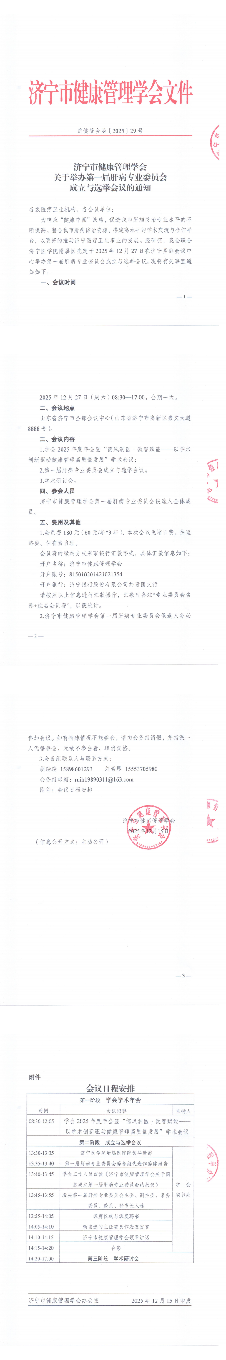 济宁市健康管理学会 关于举办第一届肝病专业委员会 成立与选举会议的通知